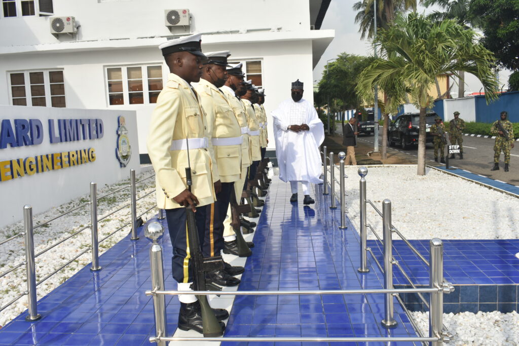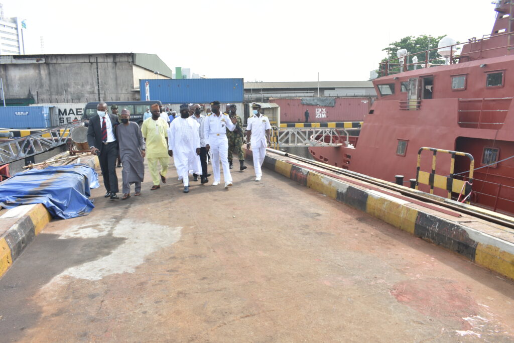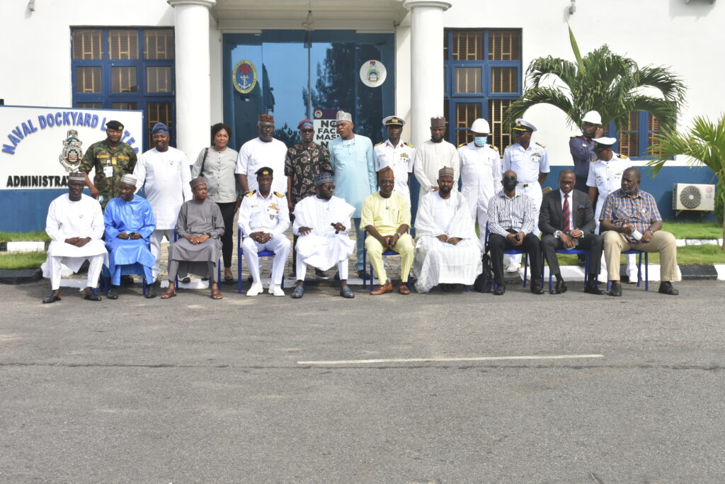 Members of House of Rep Committee on Nigerian Navy on an over sight function visit to Naval Dockyard Limited in line with the statutory role of the National Assembly as enshrined in the Constitution of the Federal Republic of Nigeria. The team was led by the Chairman of the Committee, Rt. Hon. Yusuf Adamu Gagdi.