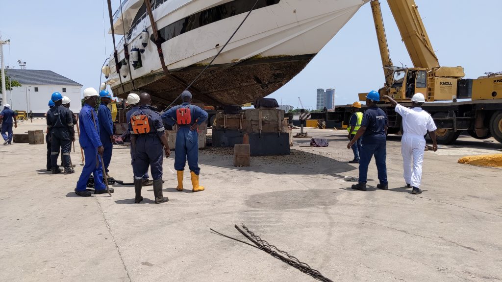 The Naval Dockyard Limited recently docked the Luxury Yacht MV APARNA for routine preservative maintenance. Docking of the vessel aptly demonstrates the vast capabilities of the Yard to seamlessly transit from docking of naval and merchant vessels to luxury Yachts, each time providing quality, prompt and cost-efficient services to various client’s equipment. Indeed, Naval Dockyard stands out as one of the leading firms in ship construction and maintenance as well as a credible and formidable player in providing services to clients in the maritime and engineering-allied fields.