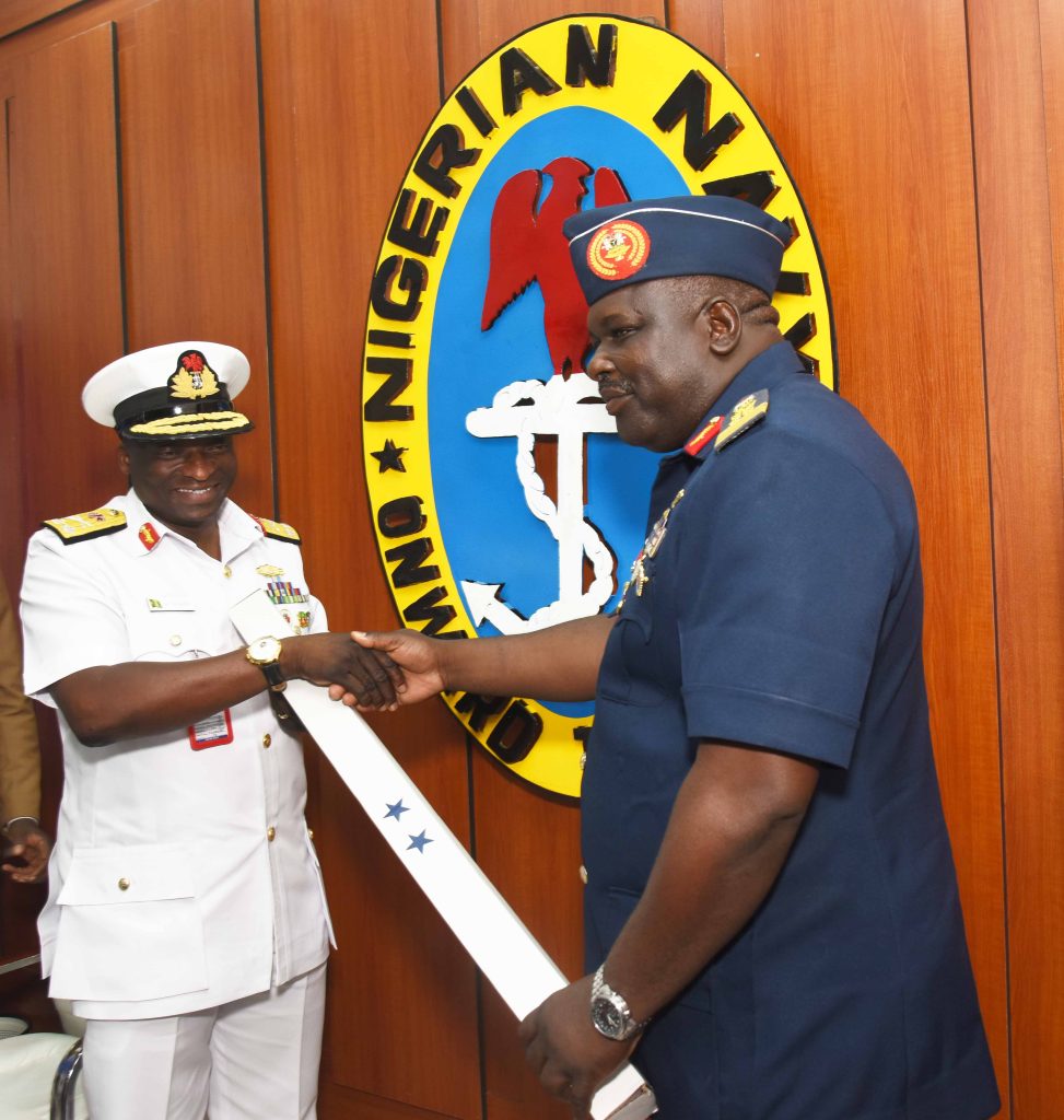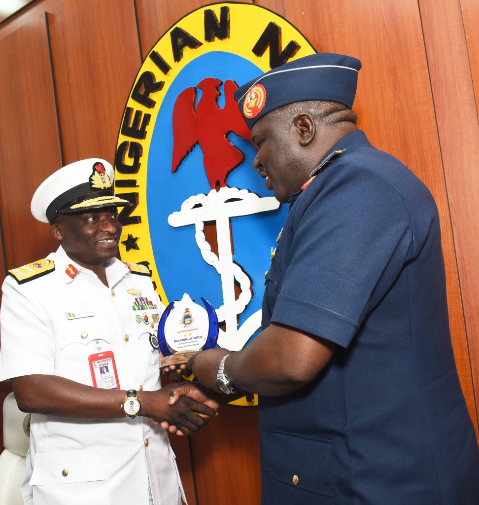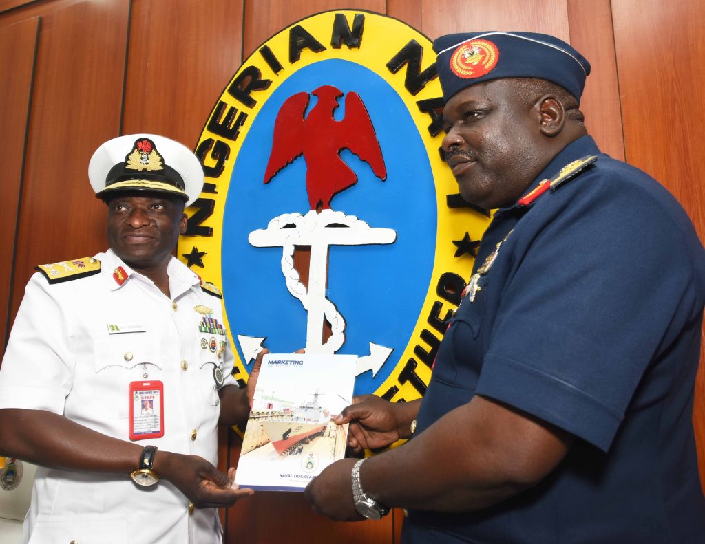 The Commandant Armed Forces Resettlement Centre (NAFRC), Air Vice Marshal BR Mamman visited the Naval Dockyard Limited (NDL) as part of the his familiarization visits to some Units in Lagos area following his assumption of office as Commandant NAFRC. The Commandant and his team were briefed on the activities of NDL in the areas of shipbuilding and maintenance as well as human capacity development. NAFRC is responsible for providing skills and training in various fields for retiring members of the Nigerian Armed Forces. The Commandant stated the purpose of his visit was to familiarize himself with the activities of NDL and seek areas of collaboration as regards to capacity building for retiring members of the Nigerian Armed Forces. In response, the Admiral Superintendent Rear Admiral AA Orederu assured the Commandant that the Yard could provide possible collaboration between the 2 organizations in areas of capacity building and skills acquisition in carpentry, welding and steel work. Additionally, trainees in NAFRC could be sent to the yard for industrial attachment during their training at the Centre.