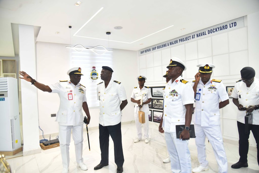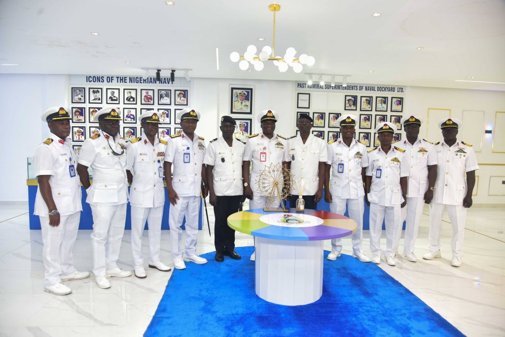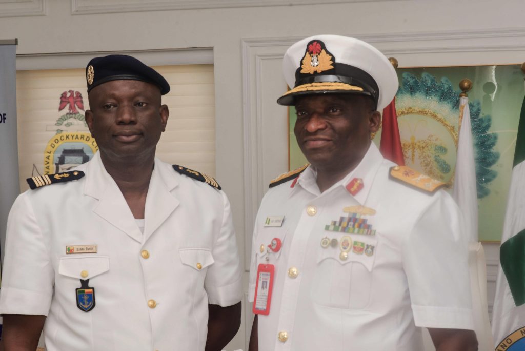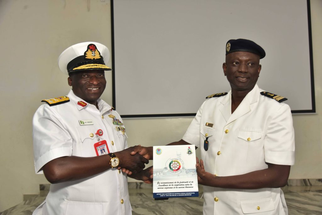 The Deputy Chief of the Naval Staff (CNS), Republic of Benin, Navy Captain Sama Emile was at the Naval Dockyard Limited (NDL) to see the progress of work on the Republic of Benin Navy Ships. He was received at the Yard by the Admiral Superintendent Naval Dockyard Limited, Rear Admiral AA Orederu. The visit afforded the Beninese Nationale Navy Deputy CNS an on the spot assessment of the ongoing repairs and maintenance of 3 naval ships in the Yard. Navy Captain Sama commended the NDL for the marvelous work carried out on his country’s naval ships and is confident the ships will be back to the fleet for operations. The Admiral Superintendent Naval Dockyard Limited appreciated the visit and promised that the ships would return to the fleet in a better operational state. The visiting Chief was taken on a guided tour of the NDL facilities.