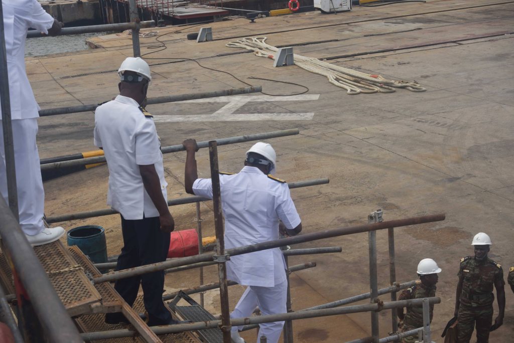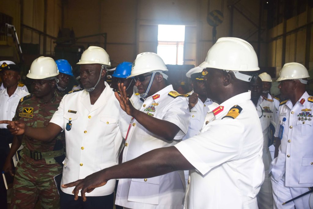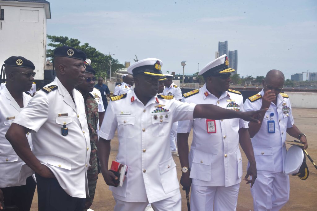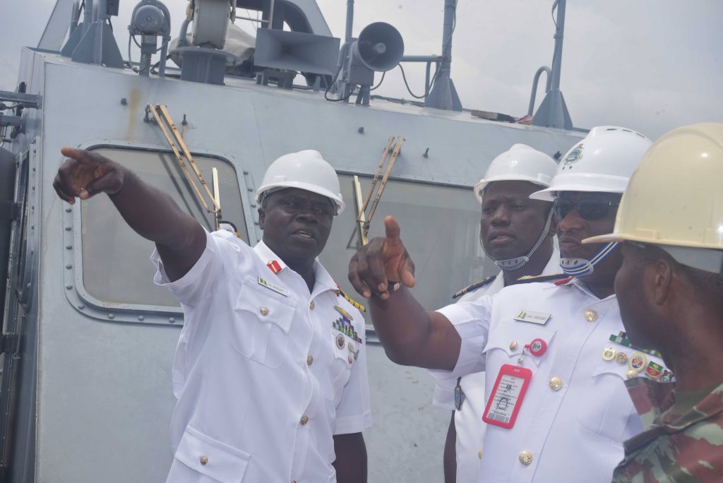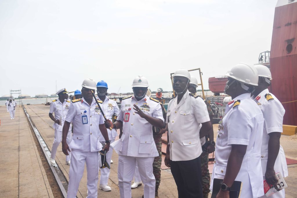 The Deputy Chief of the Naval Staff (CNS), Republic of Benin, Navy Captain Sama Emile was at the Naval Dockyard Limited (NDL) to see the progress of work on the Republic of Benin Navy Ships. He was received at the Yard by the Admiral Superintendent Naval Dockyard Limited, Rear Admiral AA Orederu. The visit afforded the Beninese Nationale Navy Deputy CNS an on the spot assessment of the ongoing repairs and maintenance of 3 naval ships in the Yard. Navy Captain Sama commended the NDL for the marvelous work carried out on his country’s naval ships and is confident the ships will be back to the fleet for operations. The Admiral Superintendent Naval Dockyard Limited appreciated the visit and promised that the ships would return to the fleet in a better operational state. The visiting Chief was taken on a guided tour of the NDL facilities.