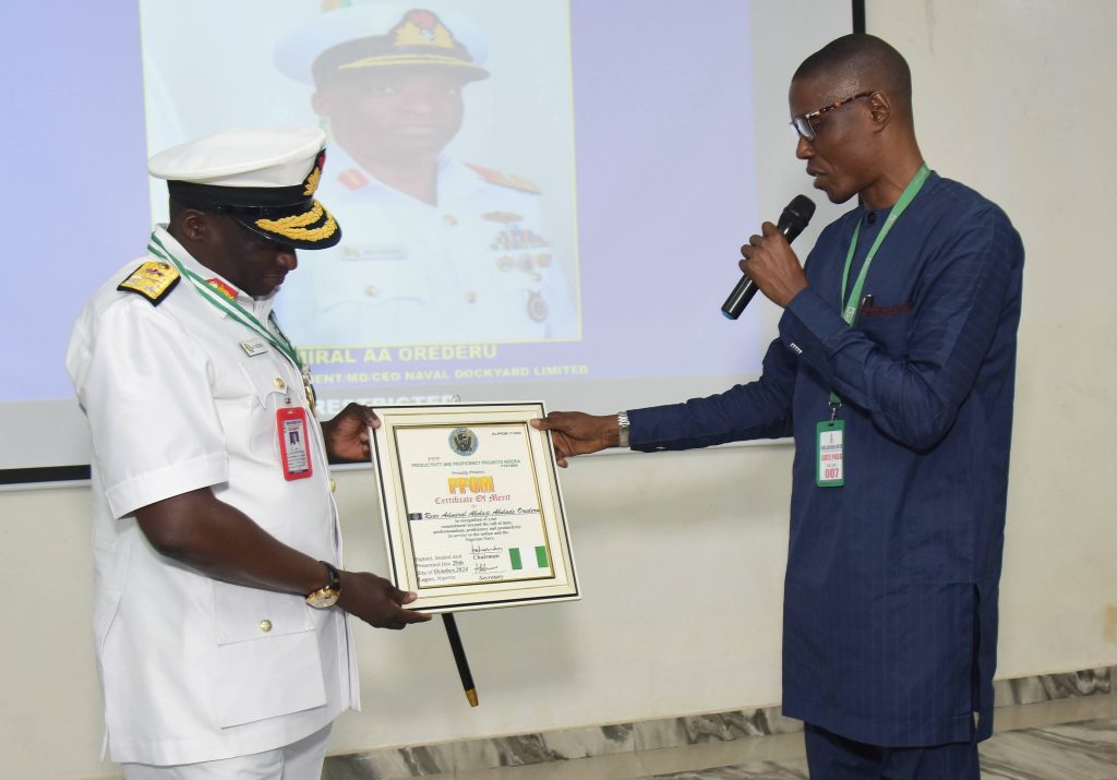 PRESENTATION OF THE AWARD OF PRODUCTIVITY AND PROFICIENCY TO REAR ADMIRAL AA OREDERU ADMIRAL SUPERINTENDENT/MANAGING DIRECTOR/CHIEF EXECUTIVE OFFICER NAVAL DOCKYARD LIMITED