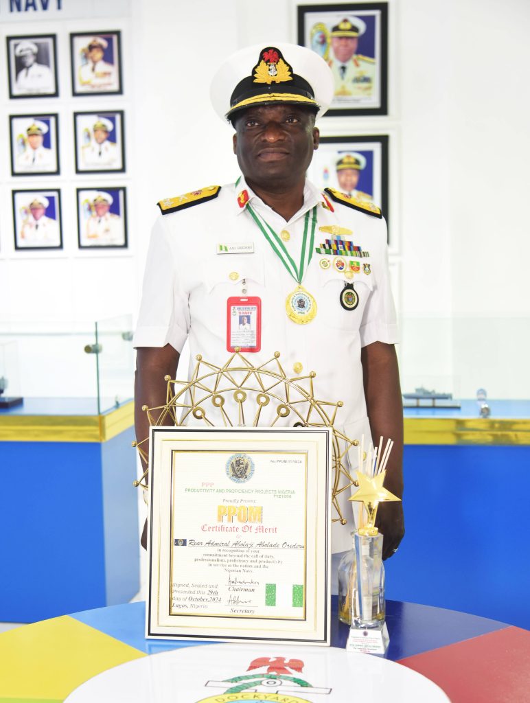 PRESENTATION OF THE AWARD OF PRODUCTIVITY AND PROFICIENCY TO REAR ADMIRAL AA OREDERU ADMIRAL SUPERINTENDENT/MANAGING DIRECTOR/CHIEF EXECUTIVE OFFICER NAVAL DOCKYARD