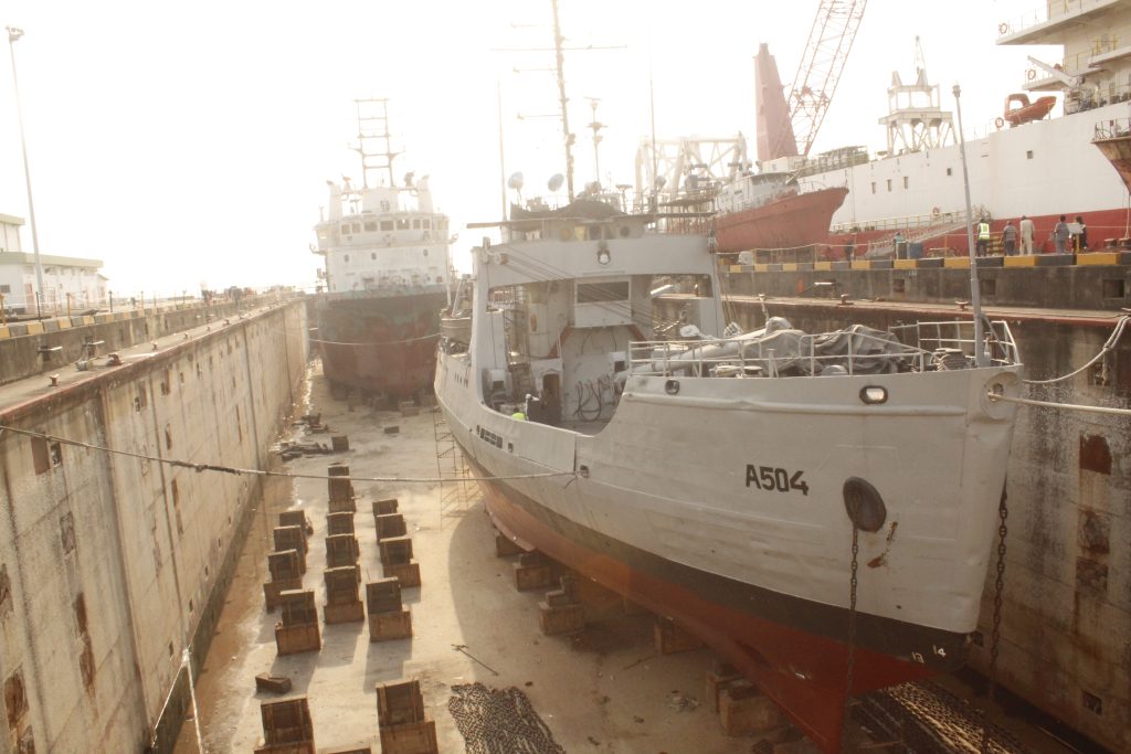 NIGERIAN NAVY SHIP OBULA & MERCHANT SHIP ADITRI FOR DRY DOCKING & GENERAL MAINTENANCE AT NDL MAIN GRAVING DOCK